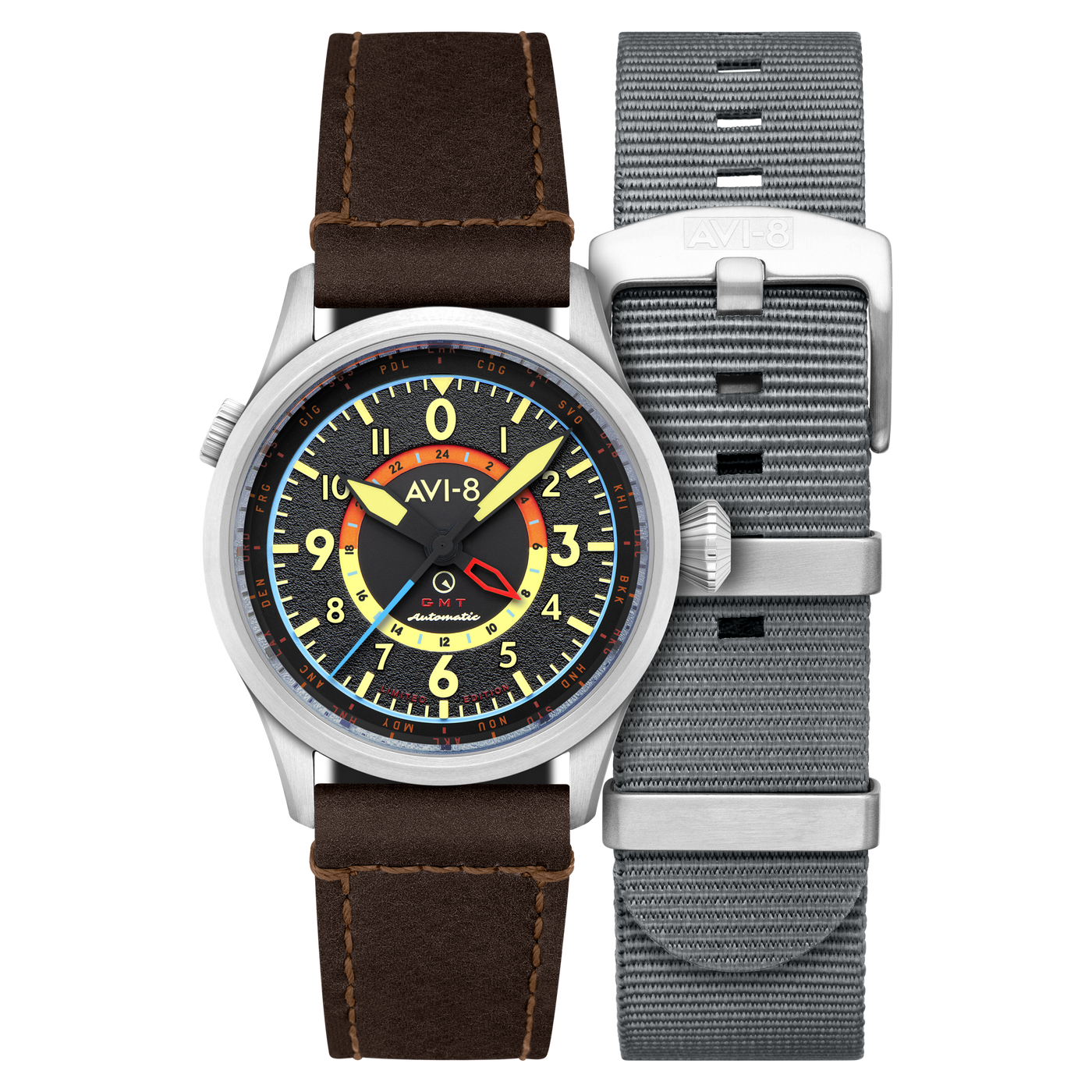 Inspired by the pilot's GMT watches of yesteryears, this collection combines timeless aviation style with contemporary watchmaking technology. Each timepiece features a multi-layered dial adorned with a chapter ring displaying 24 timezones, ensuring precision timekeeping no matter where your adventures take you.