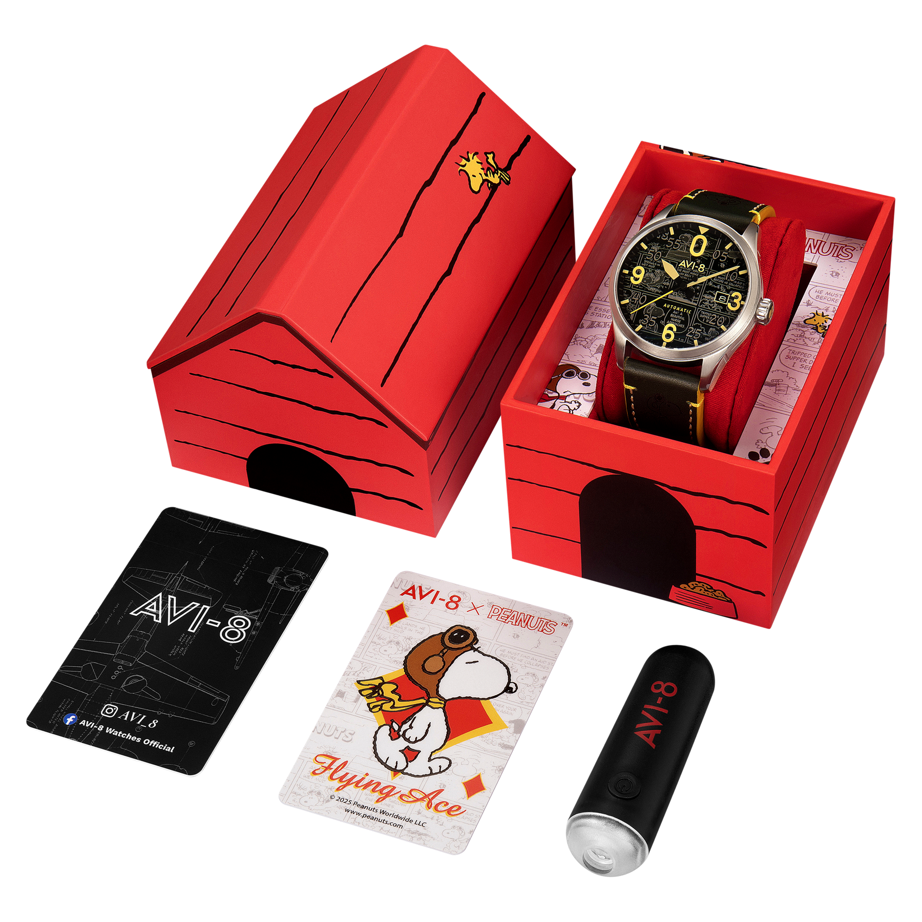 Crafted as a gift of gratitude to our devoted supporters, this new Peanuts Snoopy capsule features five distinctive variants across AVI-8’s signature models — each reimagined through the whimsical lens of Snoopy and his loyal sidekick, Woodstock.